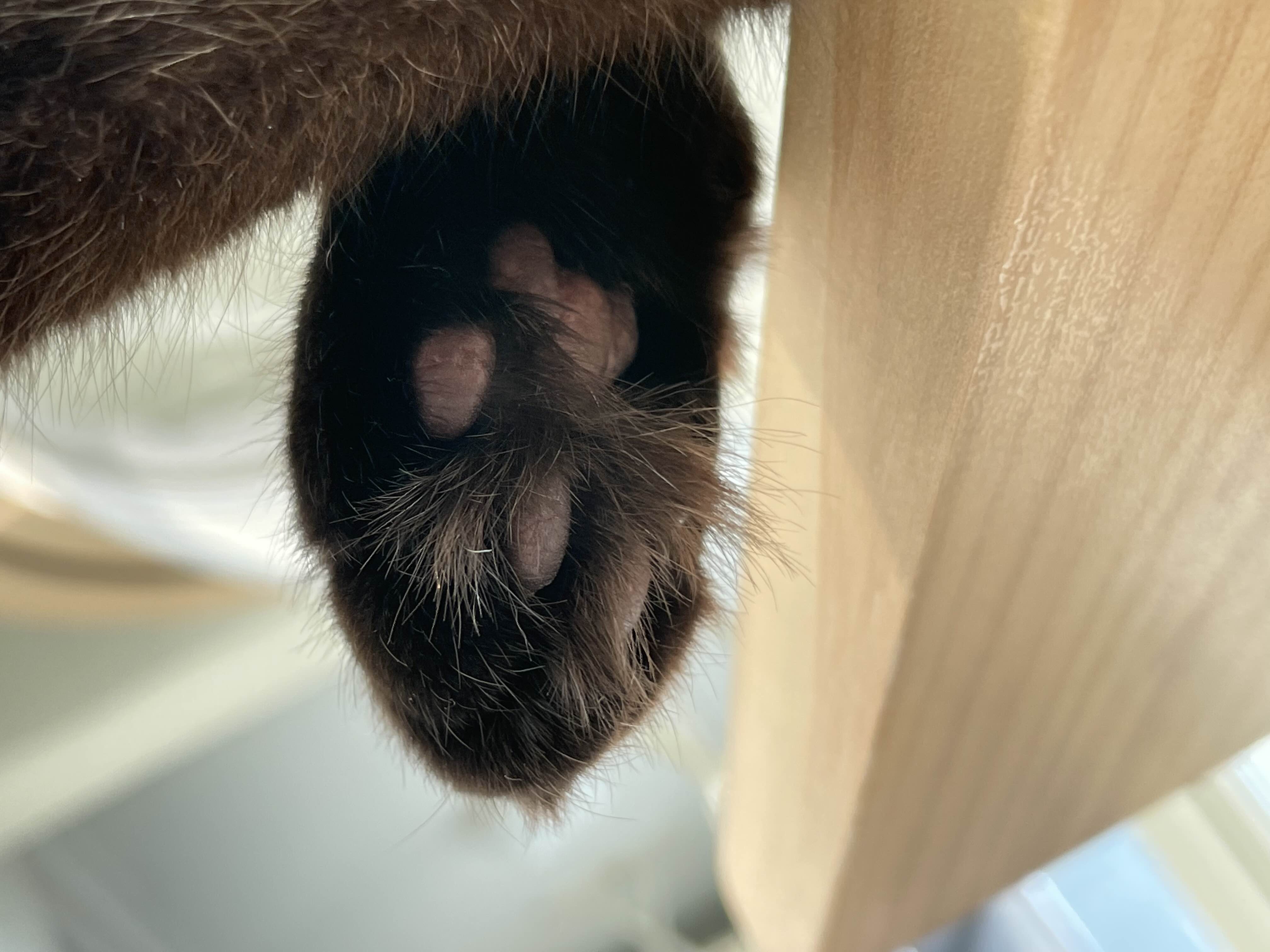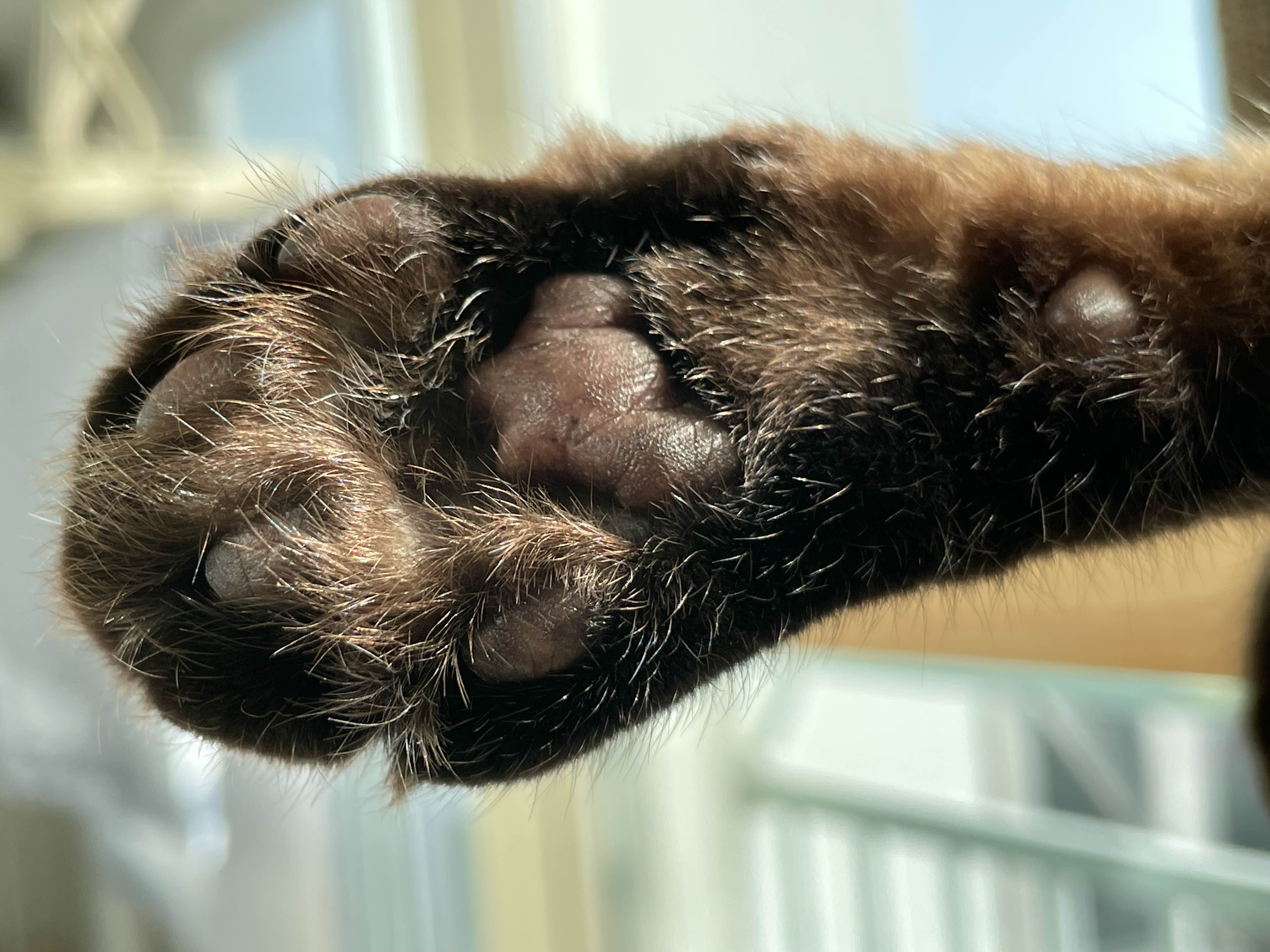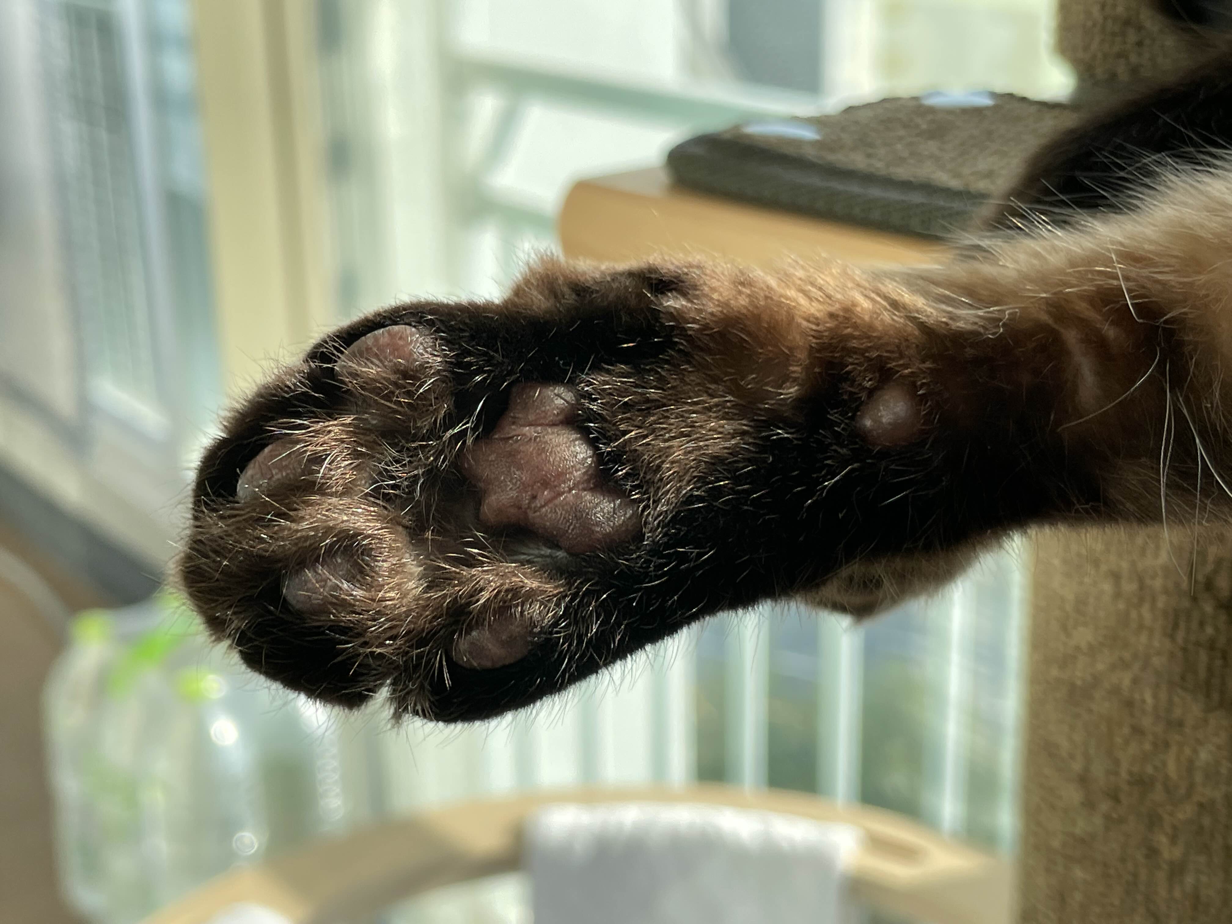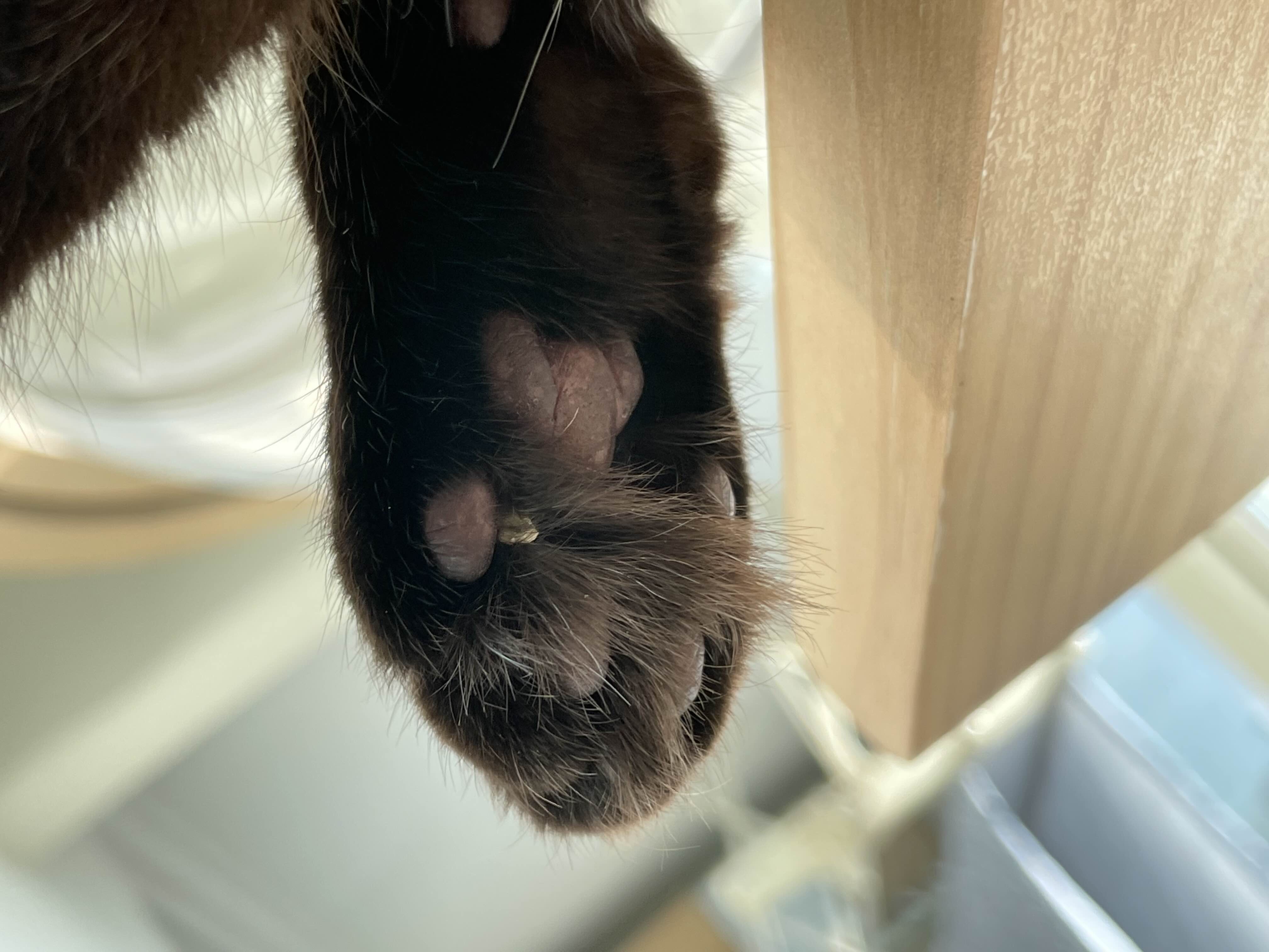 햇살이 비치는 캣타워에 매달려 있는 단추입니다.