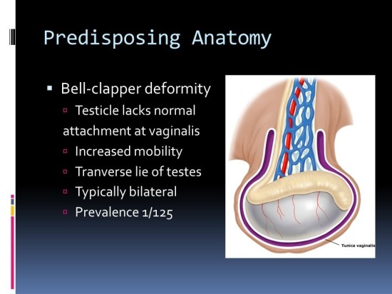 고환 꼬임은 고환에 연결되어 있는 끈 모양의 구조물인 정삭이 뒤틀린 것입니다. 정삭은 혈관과 정관으로 연결되어 있습니다. 그래서 연삭이 꼬이면 고환으로의 혈액 공급이 차단되고 대처가 늦어지면 큰일납니다. 일명 고환이 죽을 수도 있다고 합니다.