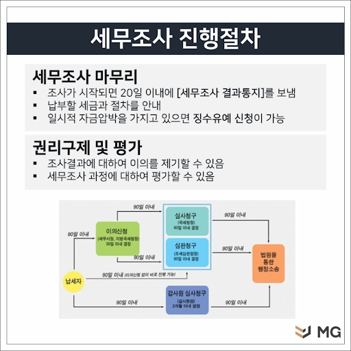 국세청이 세무조사를 개시하면 원칙적으로 종료일로부터 20일 이내에 그 결과를 대상자에게 통지해야 한다. 그러나 직접 과세되지는 않습니다. 납세자는 세전 심사 시스템을 통해 구제를 신청할 수 있습니다. 이는 납세자에게 사전에 고지하여 납세를 결정·고지하고, 납세자가 이의를 제기할 경우 징수의 적정성 확인을 요청하는 제도이지만 실제로 징수가 취소되는 경우는 많지 않다. . 관련 소명자료를 제출해야 하지만 증거가 남아 있는 경우는 거의 없다. 또한 수시조사의 경우 사전 예고 없이 갑작스럽게 조사가 진행되어 소명자료 준비에 어려움을 겪는 경우가 대부분이었다.