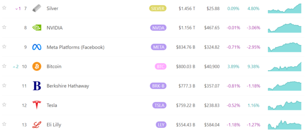마이크로소프트는 소프트웨어, 클라우드 컴퓨팅, 하드웨어 등 다양한 분야에서 활동하고 있지만, 특히 기업용 소프트웨어와 서비스 분야에서 글로벌 시장에서 강력한 입지를 확보하고 있다. 또한 AI와 통합 서비스 제공을 통한 기술 혁신으로 시장에서 주목을 받고 있을 뿐만 아니라 재무상태도 양호하고 매출과 이익이 꾸준히 증가하고 있다. – ② 애플(AAPL) 애플은 아이폰, 아이패드, 맥북 등으로 애플 생태계를 형성해 글로벌 스마트폰 시장에서 이미 높은 시장점유율을 확보하고 있다. 최근 새로운 AI 기술 도입으로 침체되어 있던 주가가 다시 상승하고 있으며, 앞으로도 애플이 내놓는 신제품에 대한 관심이 지속될 것으로 예상된다. – ③ 엔비디아(NVDA) 엔비디아는 그래픽 처리 장치(GPU) 분야에서 글로벌 리더로, 최근 주가 급등과 주식분할로 다시 주목을 받고 있는 기업이다. 엔비디아가 내놓은 GPU는 게임, 데이터센터, AI 연구 등 다양한 분야에 활용되고 있으며, 데이터센터와 AI 기술의 발전을 통해 빠르게 성장하고 있다. 빠른 성장세와 높은 잠재력을 감안하면 앞으로 주가가 얼마나 오를지 기대가 되는 상황입니다. – ④ 알파벳 주식회사(GOOG) 알파벳도.. ‘뭐라고?’ 알파벳의 핵심 자회사인 구글은 세계에서 가장 인기 있는 검색엔진을 운영하고, 구글 애드와 유튜브를 통해 광고 수익을 창출합니다. 우리가 많이 활용하는 구글 클라우드는 시장을 굳건히 장악하고 있으며, 자율주행 기술, 헬스케어, 스마트 홈 등 다양한 분야에서 입지를 강화하고 있습니다. – ⑤ 아마존닷컴 주식회사(AMZN) 알다시피 아마존은 온라인 판매와 클라우드 컴퓨팅 서비스를 제공하는 세계 최대의 전자상거래 기업 중 하나입니다. AI 기술을 활용한 자율 배송 시스템을 갖추고 있어 글로벌 시장을 장악하고 확대할 경쟁력을 갖추고 있습니다. 이제 시가총액 기준 6~10위권 기업을 살펴보겠습니다. 2. 시가총액 순위 Top 6-10 ① Saudi Aramco (2222.SR) Saudi Aramco는 세계 최대의 통합 석유 및 가스 기업으로, 원유와 천연가스의 탐사, 생산, 정제, 유통, 마케팅 사업을 영위하고 있습니다. 특히, 전통적인 석유 및 가스 생산 관련 에너지 산업에서 막대한 영향력을 행사하고 있으며, 이를 통해 안정적인 수익을 창출하고 있습니다. 미국 기술주가 모든 상위권을 차지하고 있는 상황에서 Saudi Aramco가 포함되어 있다는 사실은 참으로 주목할 만한 일입니다. ② Meta Platforms Inc. (META) Meta Platform(구 Facebook)은 Facebook, Instagram, WhatsApp 등 주요 소셜 미디어 플랫폼을 운영하고 있습니다. 요즘은 Instagram이 Facebook보다 훨씬 많이 사용되고 있으며, Threads가 얼마 전 출시되었습니다! Meta의 다양한 SNS 플랫폼은 전 세계 사람들이 사용하고 있으며, 우리의 삶에 깊이 자리 잡았기 때문에 이러한 플랫폼을 통해 가상 세계를 구축하는 것이 Meta의 또 다른 경쟁 우위가 될 것으로 예상됩니다. -③ Taiwan Semiconductor Manufacturing Company (TSMC) TSMC는 세계 최대의 파운드리(반도체 위탁생산) 기업으로, 글로벌 기술기업에 핵심 반도체를 공급하고 있다. 선진적인 반도체 제조기술과 생산능력을 갖추고 있어 글로벌 반도체 시장에서 선도적인 지위를 차지하고 있다. -⑤ Berkshire Hathaway Inc. (BRK.B) Berkshire Hathaway는 워런 버핏이 이끄는 투자회사로, 안정적인 수익을 추구하는 많은 사람들이 투자하는 곳이다. 투자포트폴리오가 다양한 산업에 걸쳐 분산되어 있어 리스크가 분산되어 있으며, 투자마스터들의 전략이 담겨 있어 어떤 주식을 포함하고 제외할 것인가가 항상 이슈가 된다. -⑤ Eli Lilly and Company (LLY) Eli Lilly는 조금 생소한 회사명이지만, S&P 500에 포함된 미국의 제약회사다. 미국 초창기에는 말라리아 치료제와 페니실린을 생산하며 입지를 굳혔다. 인슐린을 처음 상용화한 이후 꾸준히 성장해 현재는 인슐린과 더불어 항암제, 당뇨치료제, 정신질환 치료제 등을 주력 제품으로 유통하고 있다고 한다. 3. 국내 시가총액이 가장 높은 주식 국내 주식 가운데 시가총액이 세계에서 유일하게 높은 주식은 ‘삼성전자’인데, 그마저도 반도체 적자로 8계단이나 하락해 ’22위’에 머물렀다.(21위와 24위를 오가고 있다) 한때 시가총액 세계 10위까지 올랐던 적이 있는데, 아쉽다. 그래도 시가총액 면에서 글로벌 기업과 경쟁할 수 있는 대표적인 기업이 있다는 게 놀랍다. 삼성전자에 이어 현대(353위), 포스코(915위), KB금융(861위), 신한금융(1029위), 하나금융(1368위)이 순위에 올랐다. 삼성전자가 다른 기업에 비해 압도적으로 우위에 있다. 4. 미국 주식 휴장일을 체크하라! 참고로 7월 4일은 독립기념일이라 미국 주식은 휴장입니다. 매도해야 할 주식이 있다면 공휴일을 기억해두고 전날 매도하는 등 미리 매도 전략을 짜는 게 좋을 듯합니다. – 미국 주식시장이 지금 과열구간인가요? 이상하게도 아직 FEAR구간인가요? 버블이 너무 심하다고 생각했는데 아직 정점과는 좀 거리가 있는 걸까요? 그런데 1년 후면 탐욕구간까지 갈 것이라는 의견이 매우 높습니다. (76%) – 지금까지 세계 시가총액 순위 10위권에 진입한 주식을 잠깐 살펴보겠습니다. 엔비디아의 역사적 상승과 주식분할, S&P500과 나스닥