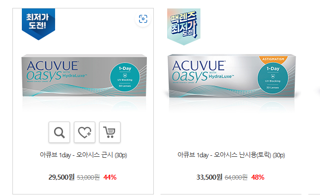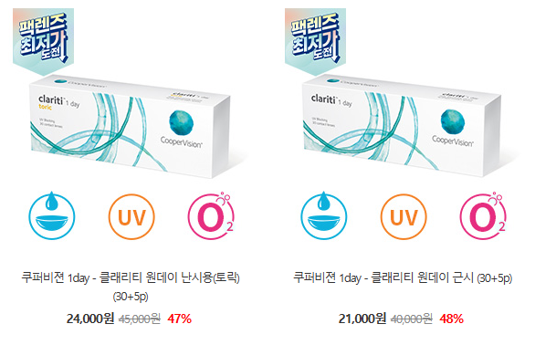 클래리티 오아시스 워터렌즈 데일리렌즈 제주 최저가!